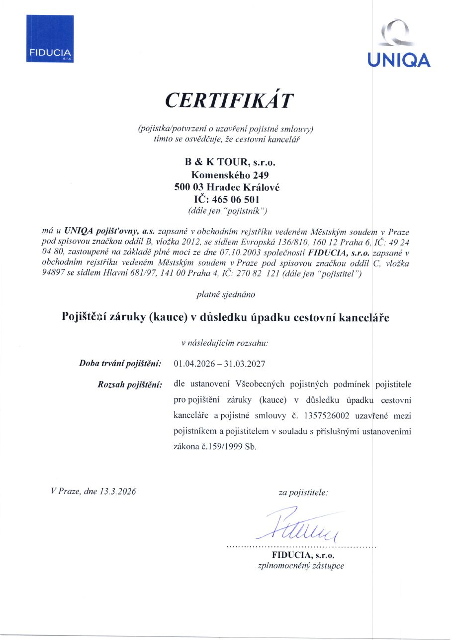Cestovní kancelář B&K má díky dlouhodobě dobrým výsledkům